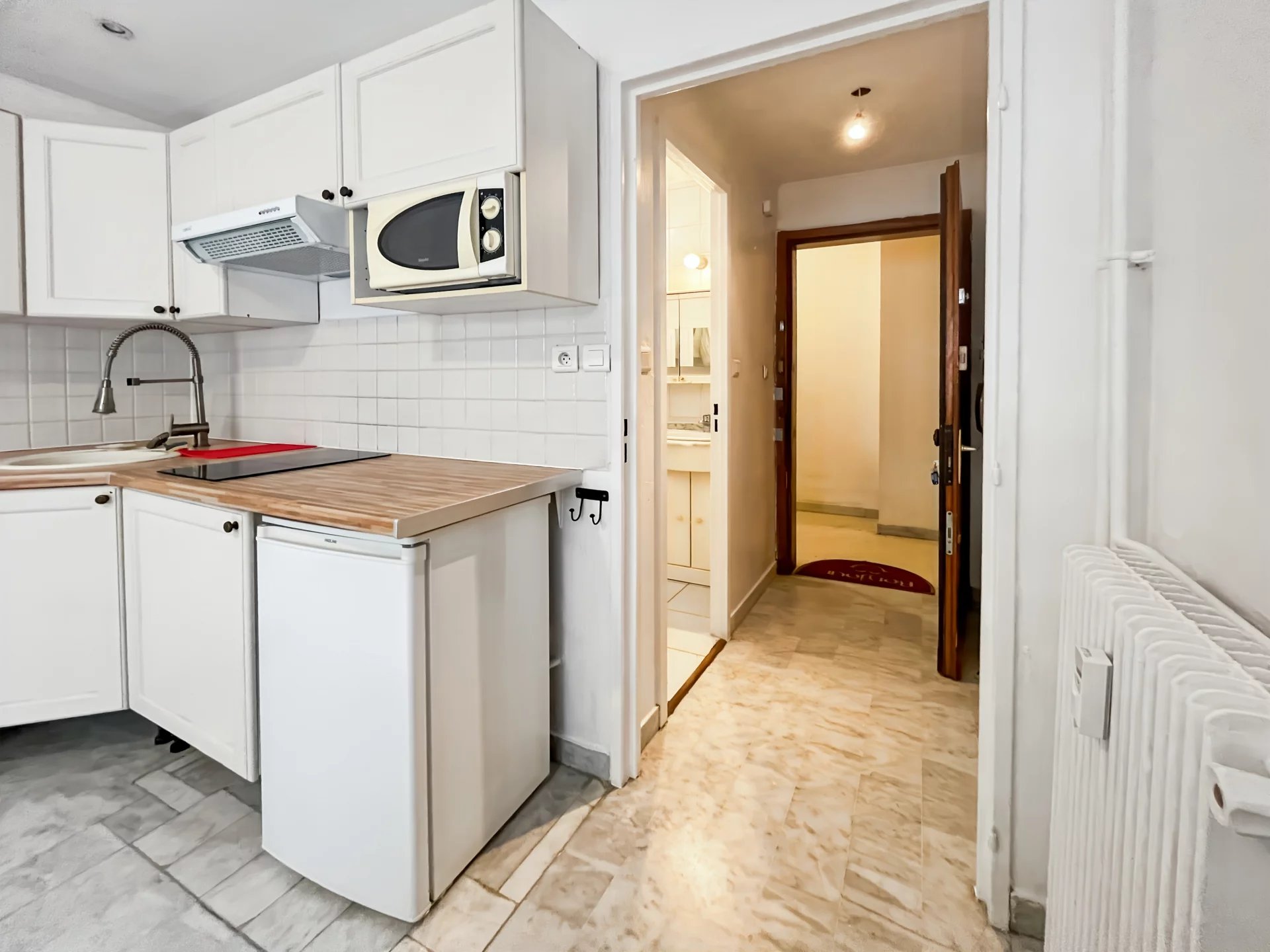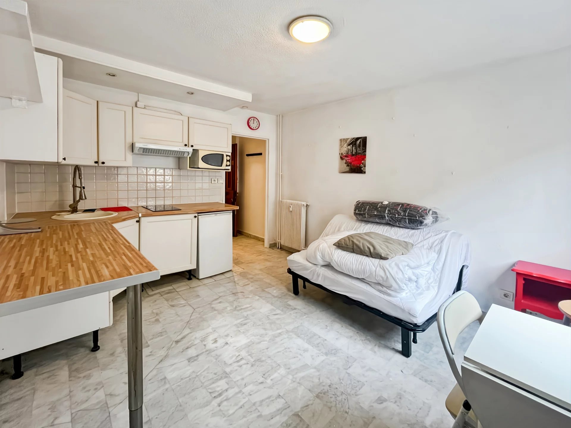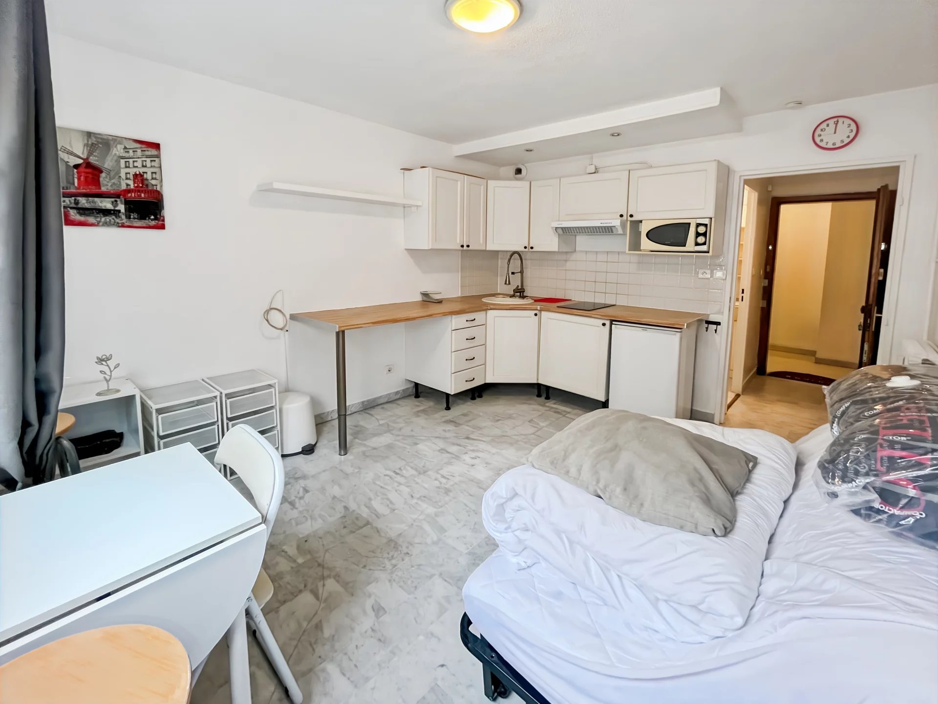 Studio meublé d’environ 18m2, situé au 4ème étage avec ascenseur, ensoleillé et au calme absolu.